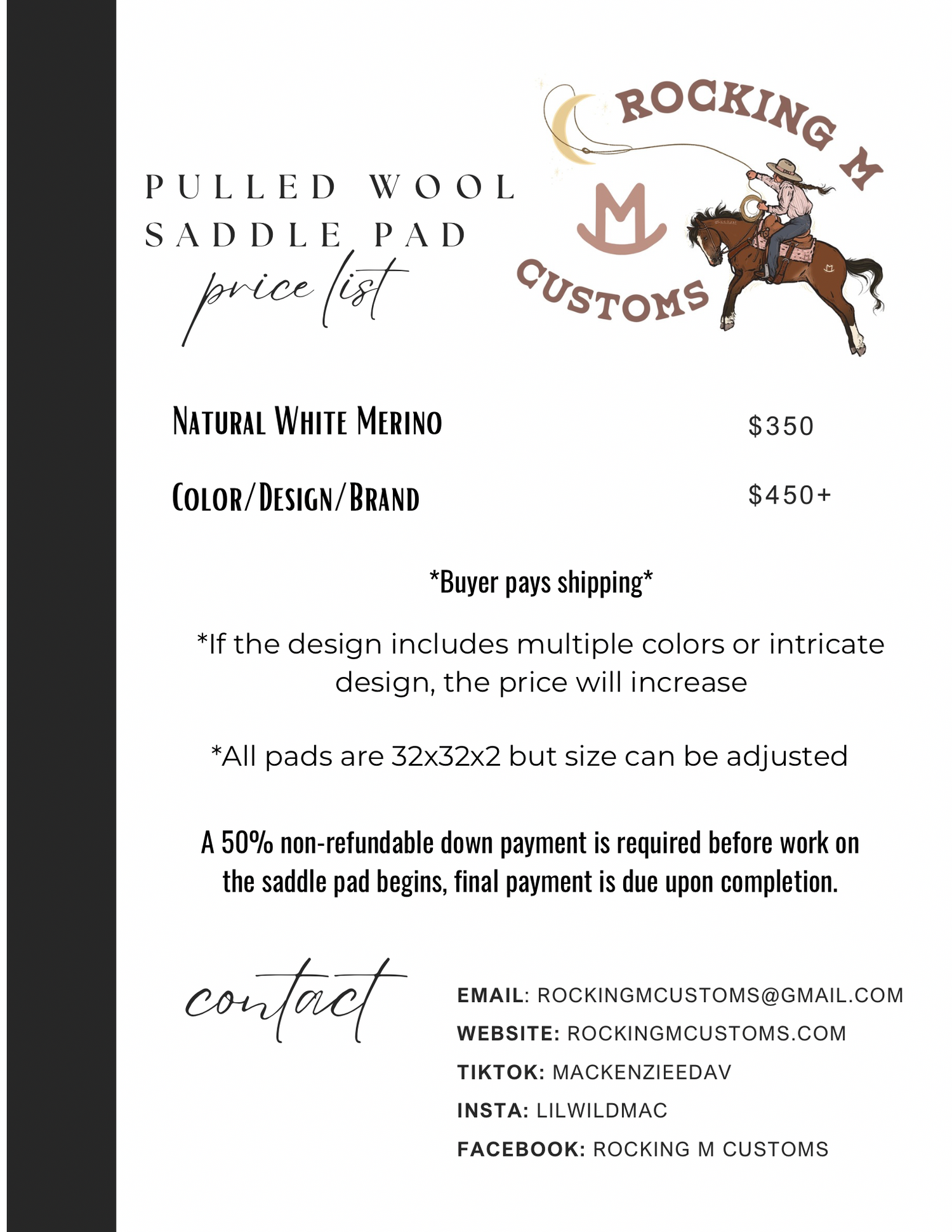 2026 CUSTOM PULLED WOOL SADDLE PAD ORDERS ARE OPEN!